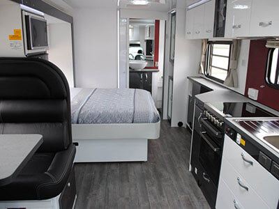 Once you step inside the Torquay you will be impressed by the abundance of luxury inclusions like the apartment style furniture, leather upholstery, electric pop up TV on a swivel bracket, wine rack and plenty of living space with a large full length slide out.